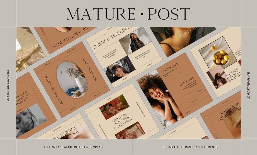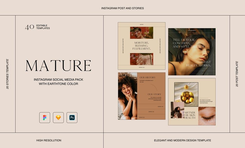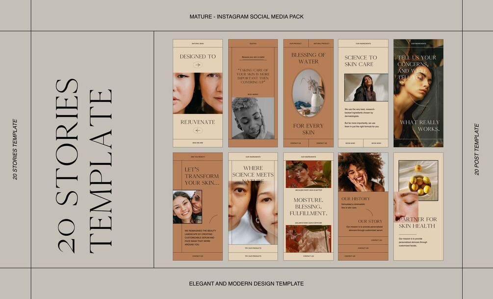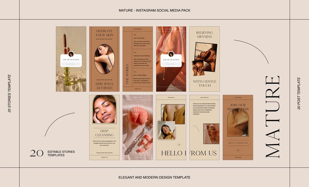 It's crafted beautifully to bring pleasure, calm, and peace with a minimalist and modernism design to boost your product on your Instagram. Bringing a concept with using earth tone color for giving a calm and peaceful feeling for your customer.
